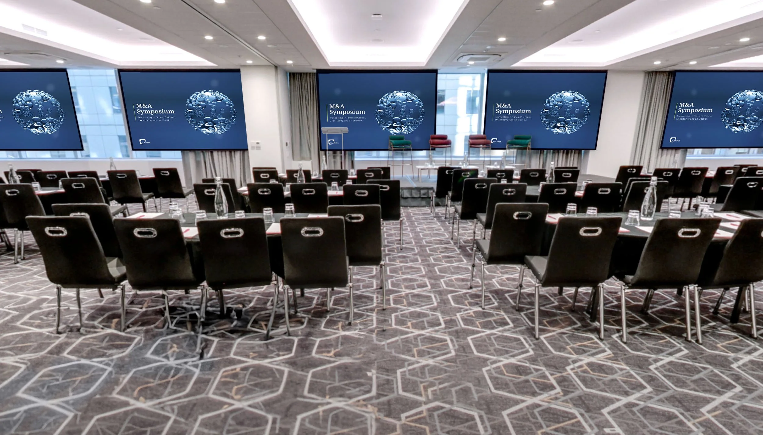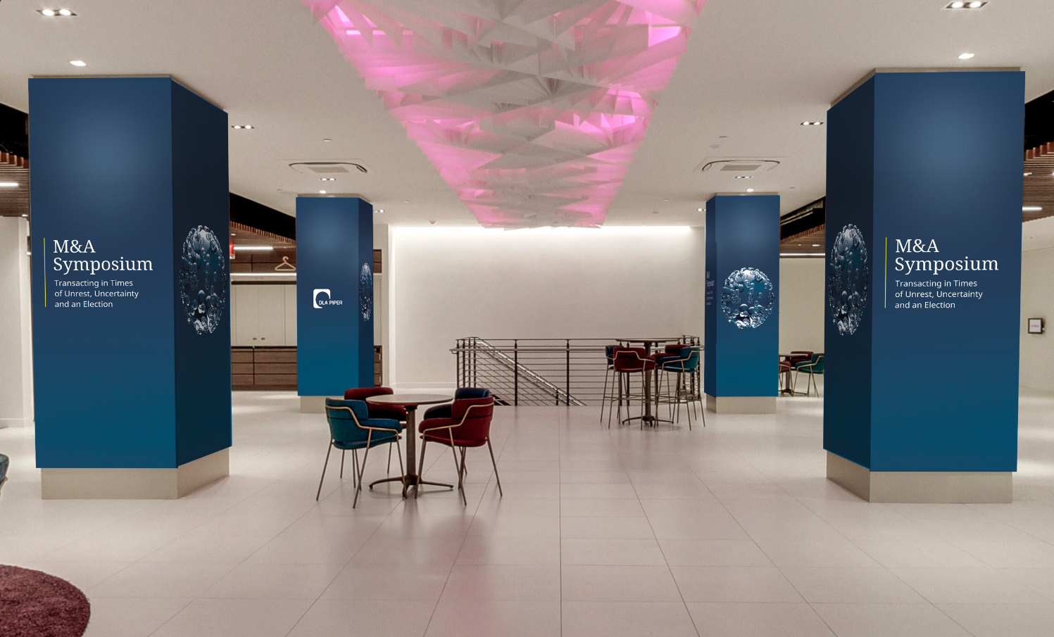 An immersive branding concept developed for a high-level legal symposium on M&A strategy.